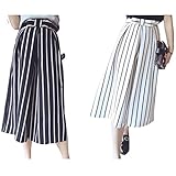 ハイウエストで着こなしているので女性らしいラインが目立ちますし、ガウチョに使われている白の面積も大きくなるので清潔感があります。